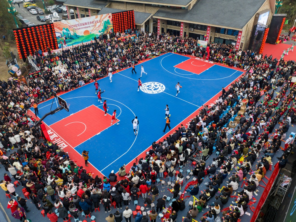 当日,在四川省宜宾市珙县巡场镇三合村,2024宜宾首届和美乡村文化节暨首届和美乡村篮球决赛(村BA)举行,同时,现场还举行了非遗年货购物节、消费券发放等活动,以赛事经济激发乡村活力。
