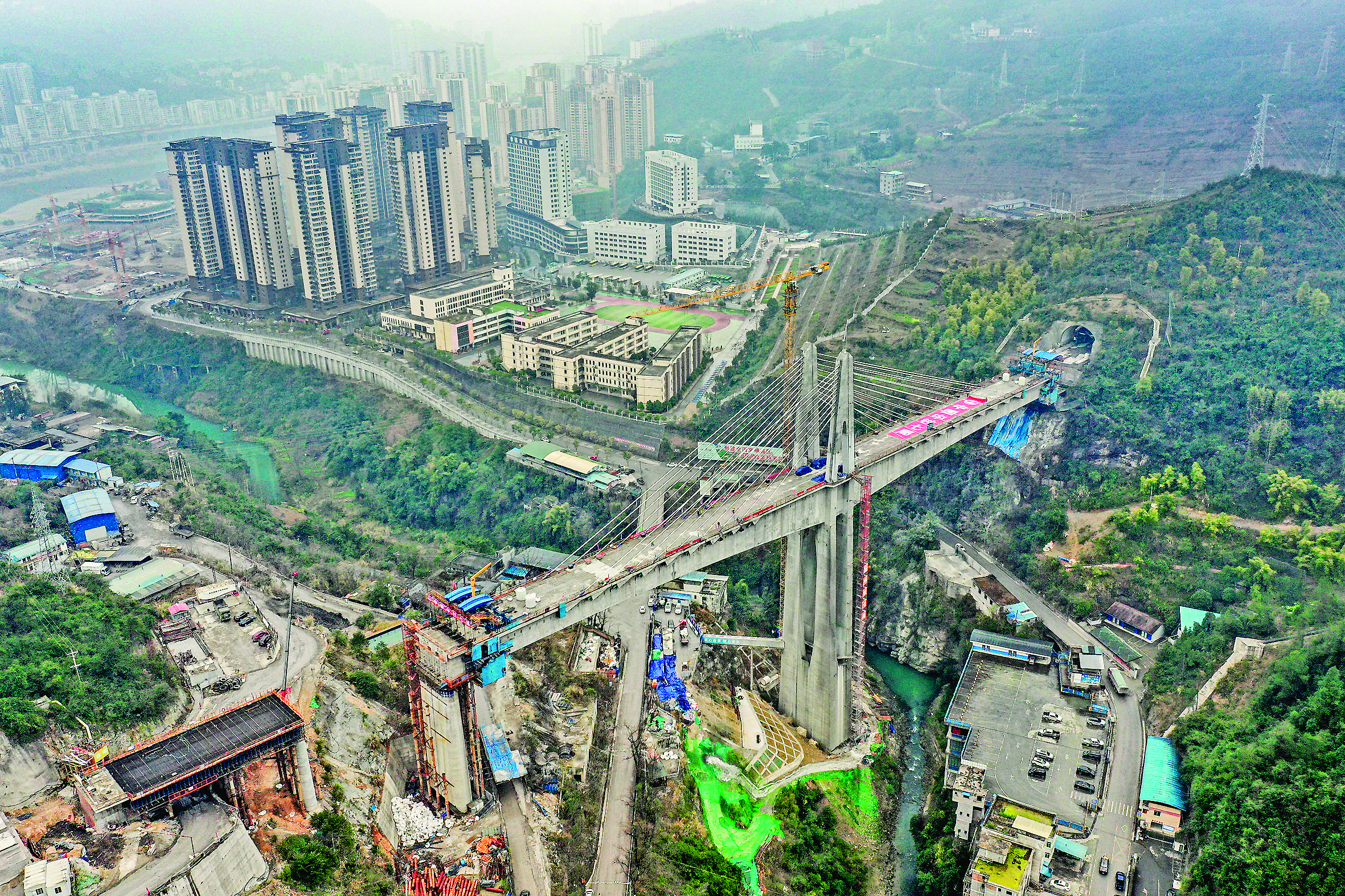 ▲这是1月31日拍摄的渝湘高铁长途河双线大桥施工现场。