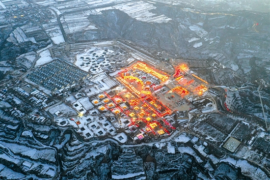 2024年陕州灯会即将盛大启幕,连日来,流光溢彩的各色花灯渐渐亮起来了,将皑皑白雪覆盖下的陕塬装点成了一幅绝美画卷。 记者 王建栋 摄