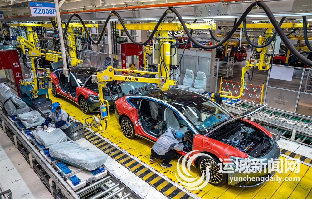 1月31日,工人在大运新能源汽车总装车间作业。近年来,我市大力发展新能源汽车产业,打造绿色环保、智能化的智慧生产线,让数字技术助推产业升级。