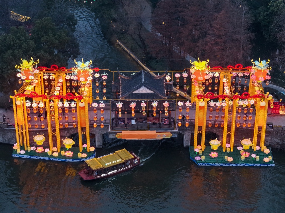 新春将近,各式各样的主题花灯纷纷点亮江苏南京,吸引众多市民游客观赏游玩。据介绍,约330组花灯将于春节期间在南京白鹭洲公园、夫子庙核心区、十里秦淮、老门东等7个展区展出。 新华社记者 李 博 摄