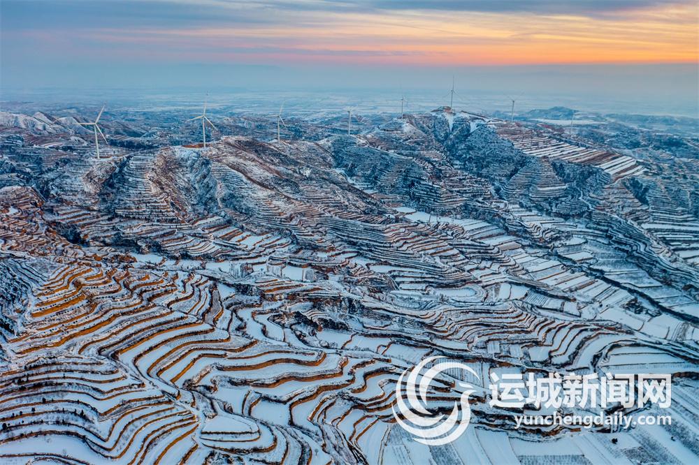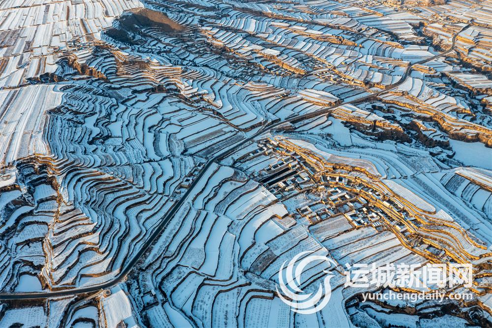 近日的降雪使万荣县境内稷王山裹上了一层银装,层峦叠嶂的梯田和错落有致的农舍“涂”上同样的白色,组成了一幅美丽画卷。