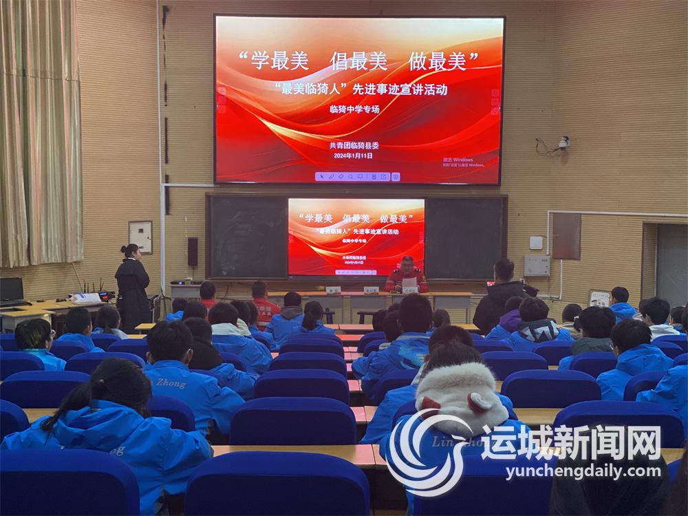 临猗县“最美临猗人”在临猗中学作宣讲。