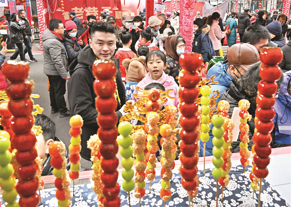2月18日,游客在萝卜·元宵·糖球会上选购糖球。