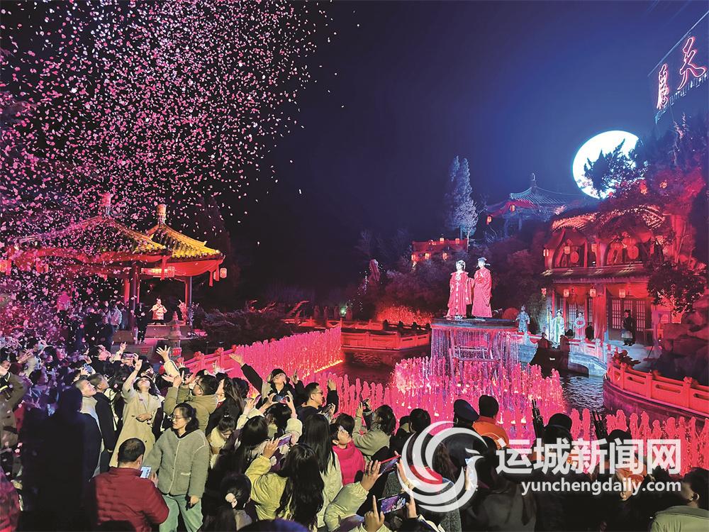 运城晚报讯(记者 薛丽娟)新春之际,永济普救寺景区人头攒动,寺前广场上被各种特色小吃和游乐设施占满,游客扶老携幼、穿行其间,观看民俗表演,体验浓浓年味。夜游普救寺更是成为时尚,大型行浸式夜游体验剧《梦境·西厢记》圈粉多多。