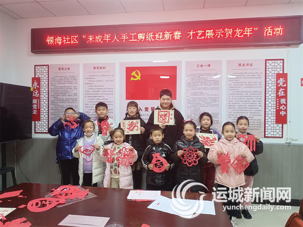 运城晚报讯(记者 杜磊)为做好未成年人关心关爱服务工作,让孩子们度过一个安全健康、温暖祥和的快乐假期,近期,盐湖区东城街道银海社区组织辖区学生,开展“手工剪纸迎新春 才艺展示贺龙年”活动。