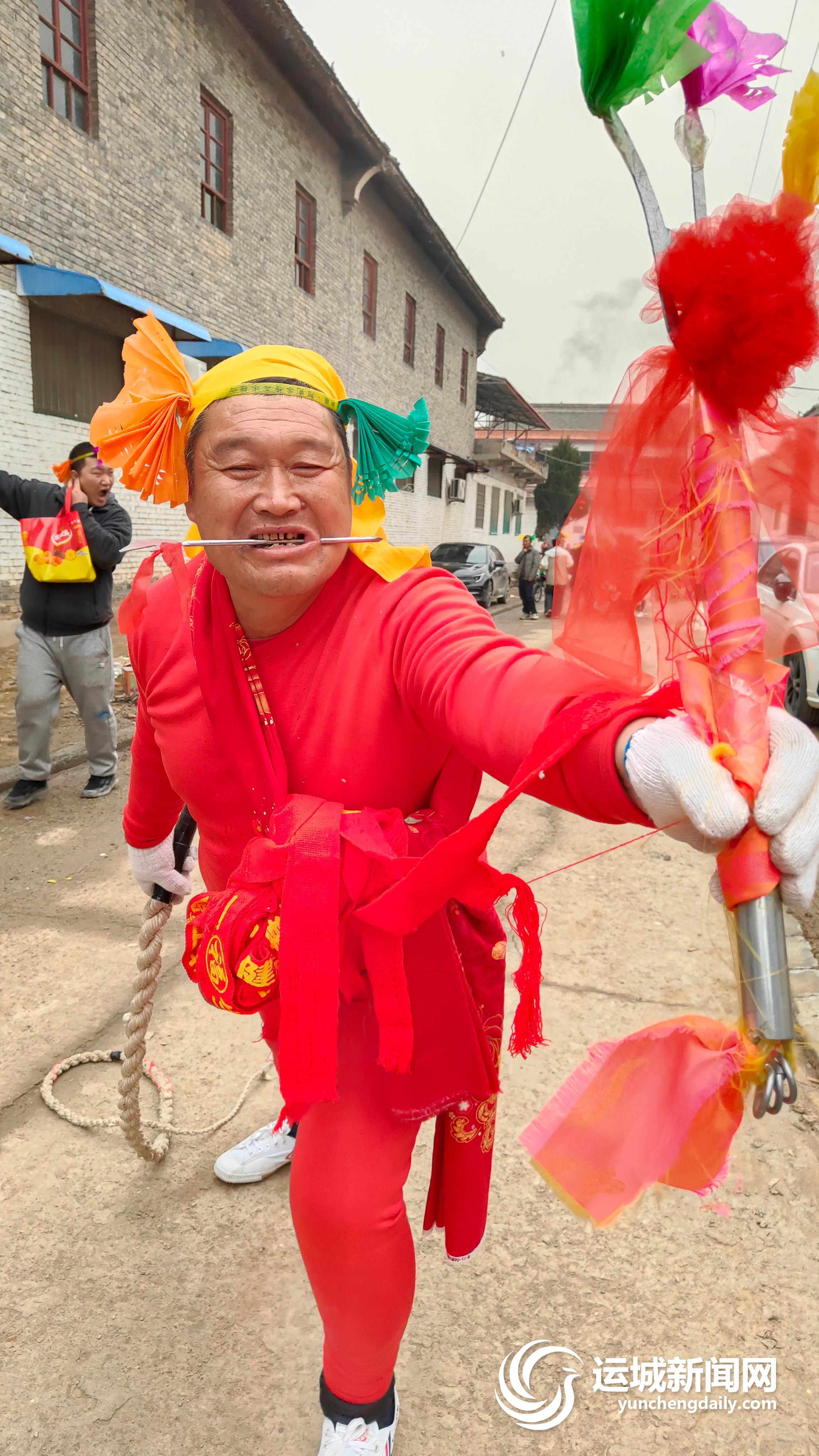 有个马角勇士有着30多年的表演经验,声称:“天天扎都没事儿,去年扎了8回,前年扎了9回。扎完就能吃饭,但得吃凉的,伤口几天就能长好……”他今天扎完,明天还要去万荣别的村再扎。