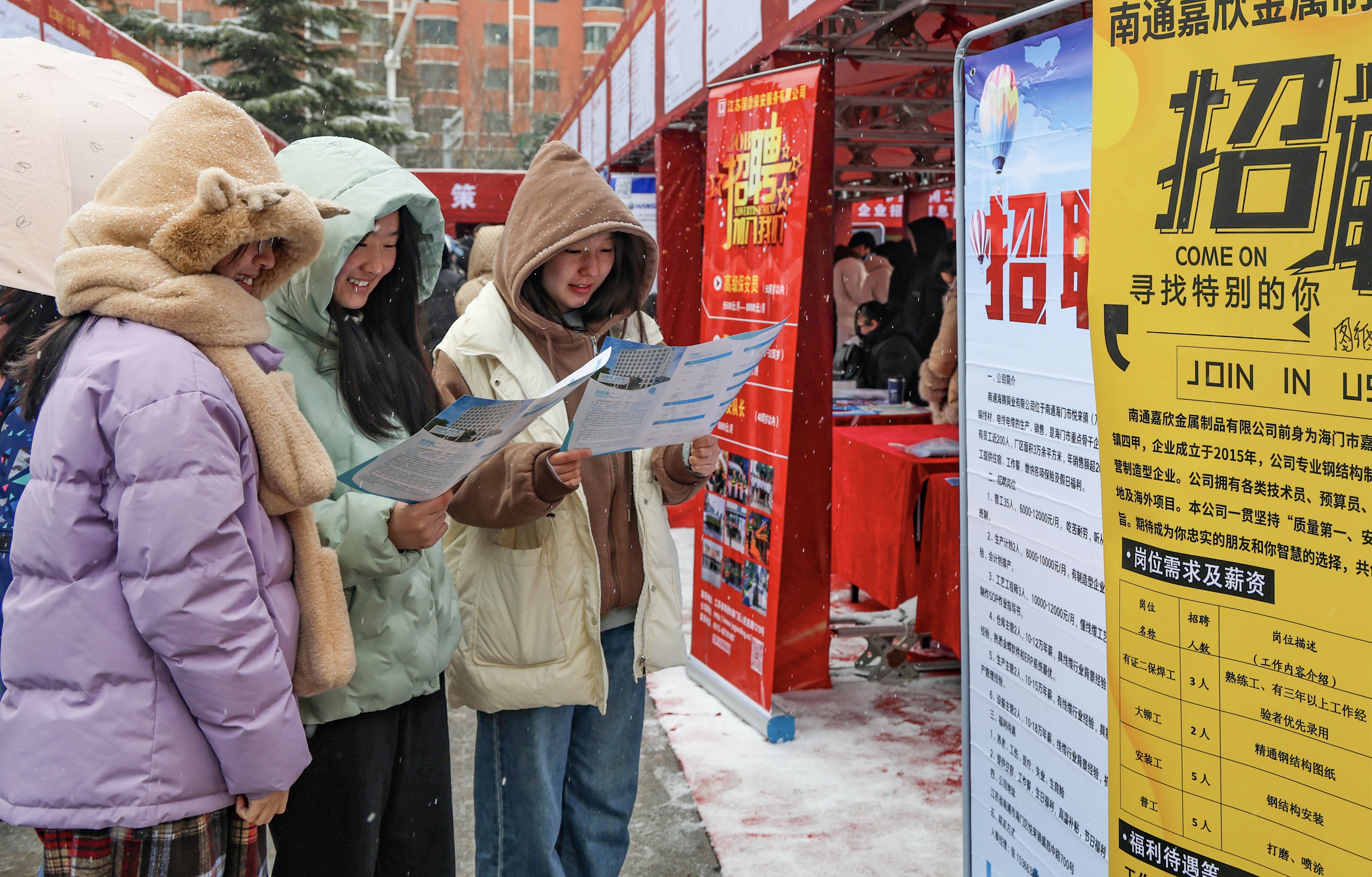 虽是降雪天气,但求职者和用人单位的热情不减,现场人头攒动、交流热烈。求职者积极与企业负责人沟通、交流,咨询岗位要求、薪资待遇、晋升空间等,有意向进一步沟通的则留下联系方式。当天,来自省内外的300余家用人单位提供了3.2万余个就业岗位,涵盖制造业、服务业、信息技术等百余个行业,既有高新技术岗位,也有技能服务型岗位,为求职者提供了丰富的就业选择。