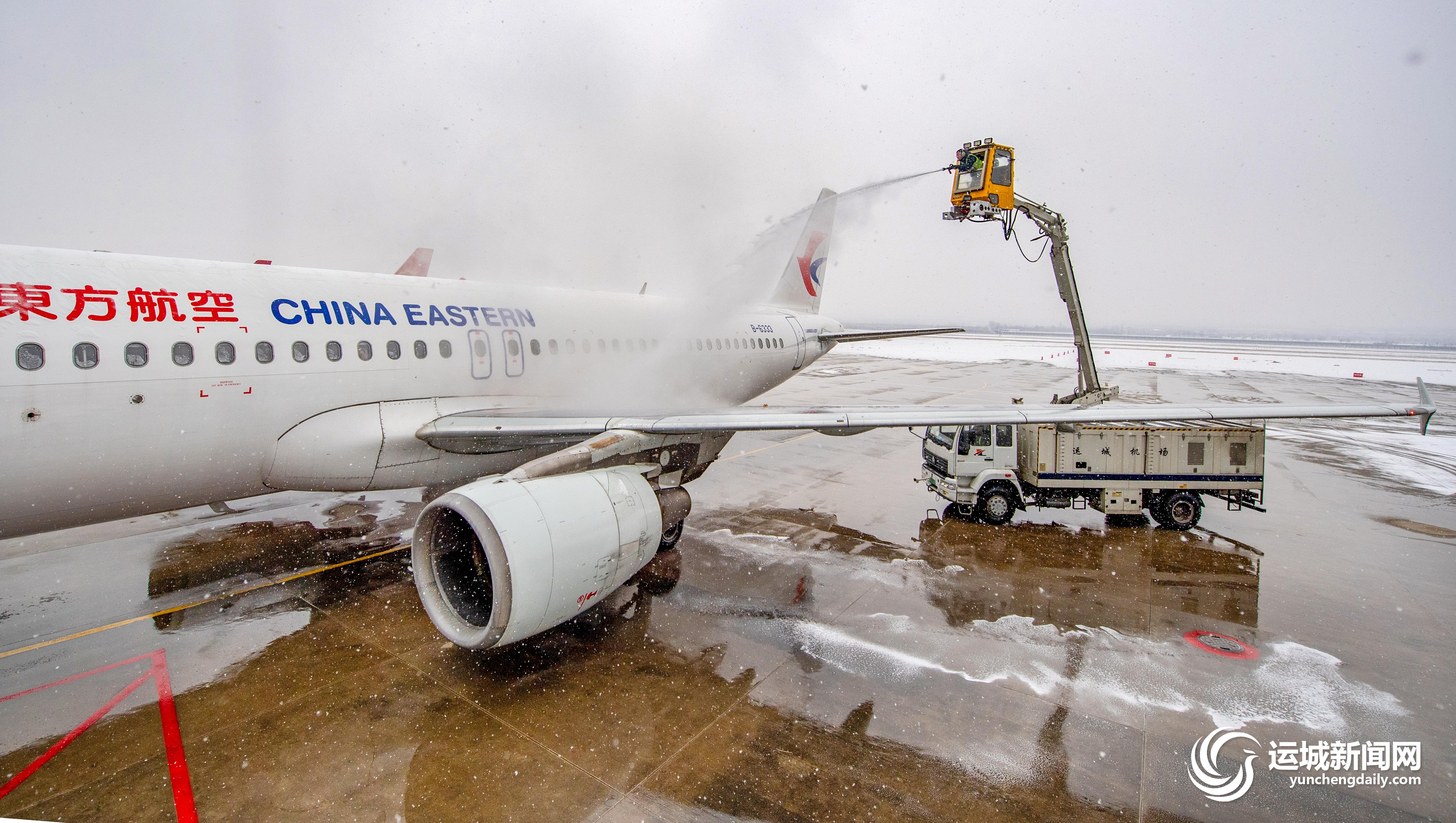 当日,我市出现降雪和低气温天气,运城机场迅速启动除冰雪应急预案,及时对跑道、滑行道及航空器机坪活动区进行吹雪作业,对飞机进行全面清雪除冰,确保飞机安全顺利进出港。