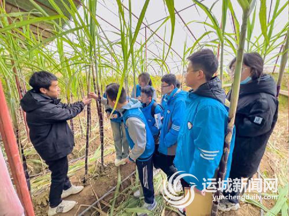 采访当天,甘蔗大棚还迎来了8名市实验中学的学生。面对学生们的好奇,张泽璞从甘蔗的生长环境、种植方式、管理环节、病虫害防治等方面进行了详细讲解。