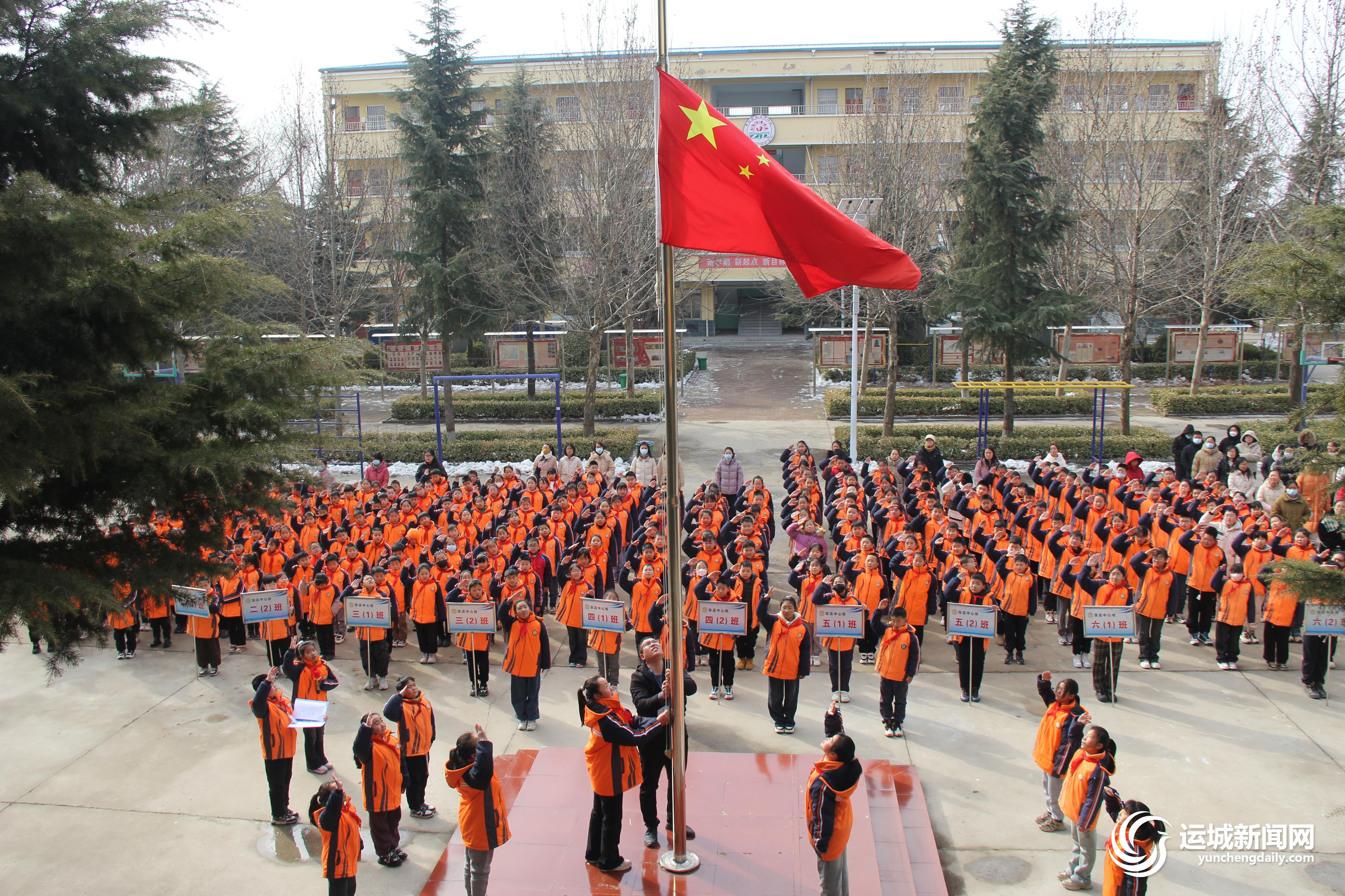 在平陆县张店中心校操场上,伴随着嘹亮的国歌声,五星红旗冉冉升起,孩子们个个精神饱满、气宇轩昂,庄严而肃穆地行队礼、唱国歌,表达对老师深深的爱意和对祖国美好的祝福。