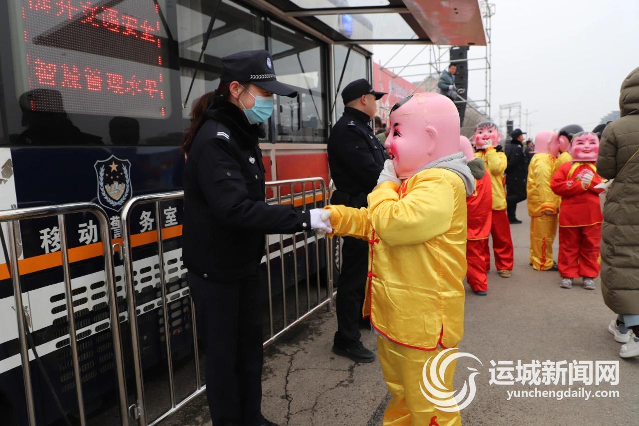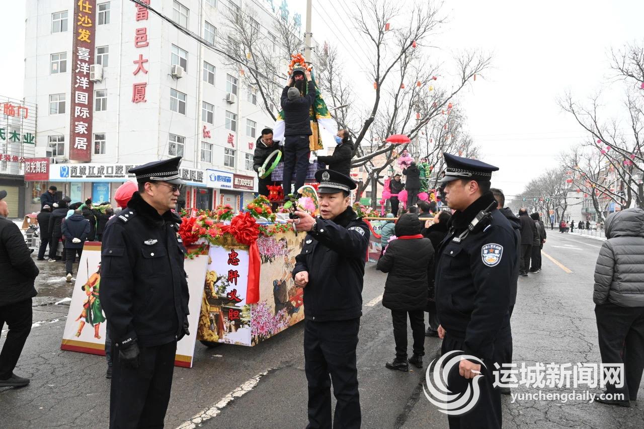 芮城县公安局成立安保指挥部,分成9个安保小组,驻守32个执勤工作岗位,将警力投入到街面和重点部位,实现空中、地面全覆盖,全面提高见警率、管事率,保障群众出行平安。执勤中,民辅警按照职责任务分工,有序引导群众在指定区域观看,圆满完成了芮城县社火表演安保任务。