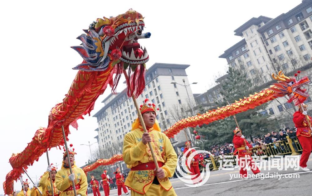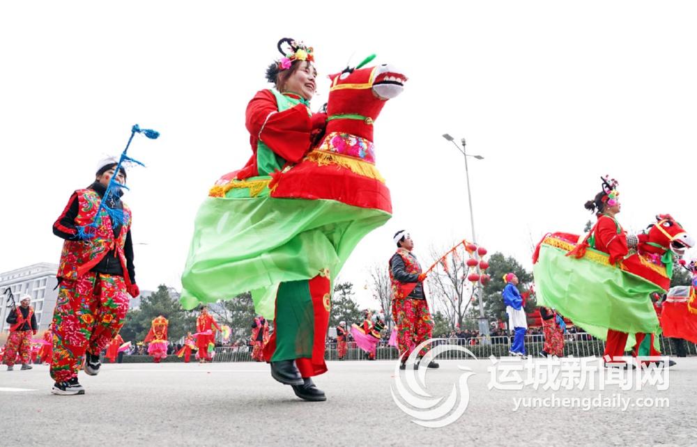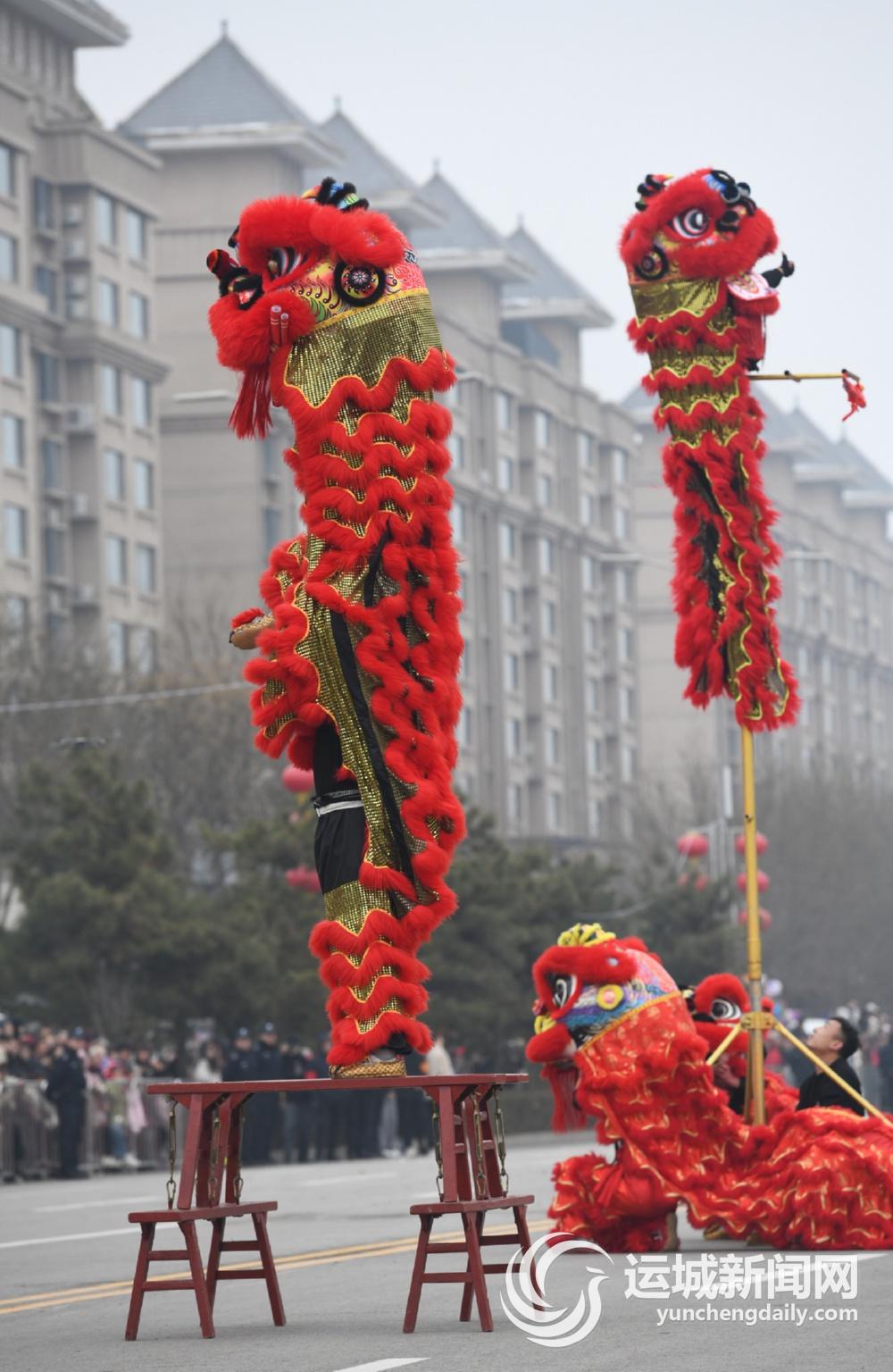 上午10时,社火展演在隆隆礼炮声中正式拉开帷幕,此时的绛州大道上彩旗猎猎,祝福横幅耀眼醒目。演员们身穿喜庆艳丽的服装,踏着喜庆的鼓点、和着轻快的节拍相继登场。《金龙庆春》《威风锣鼓》《龙腾秧歌》《七彩旱船》《峨嵋大鼓》……节目丰富、精彩纷呈,引得群众拍手称赞,将年味儿拉满。