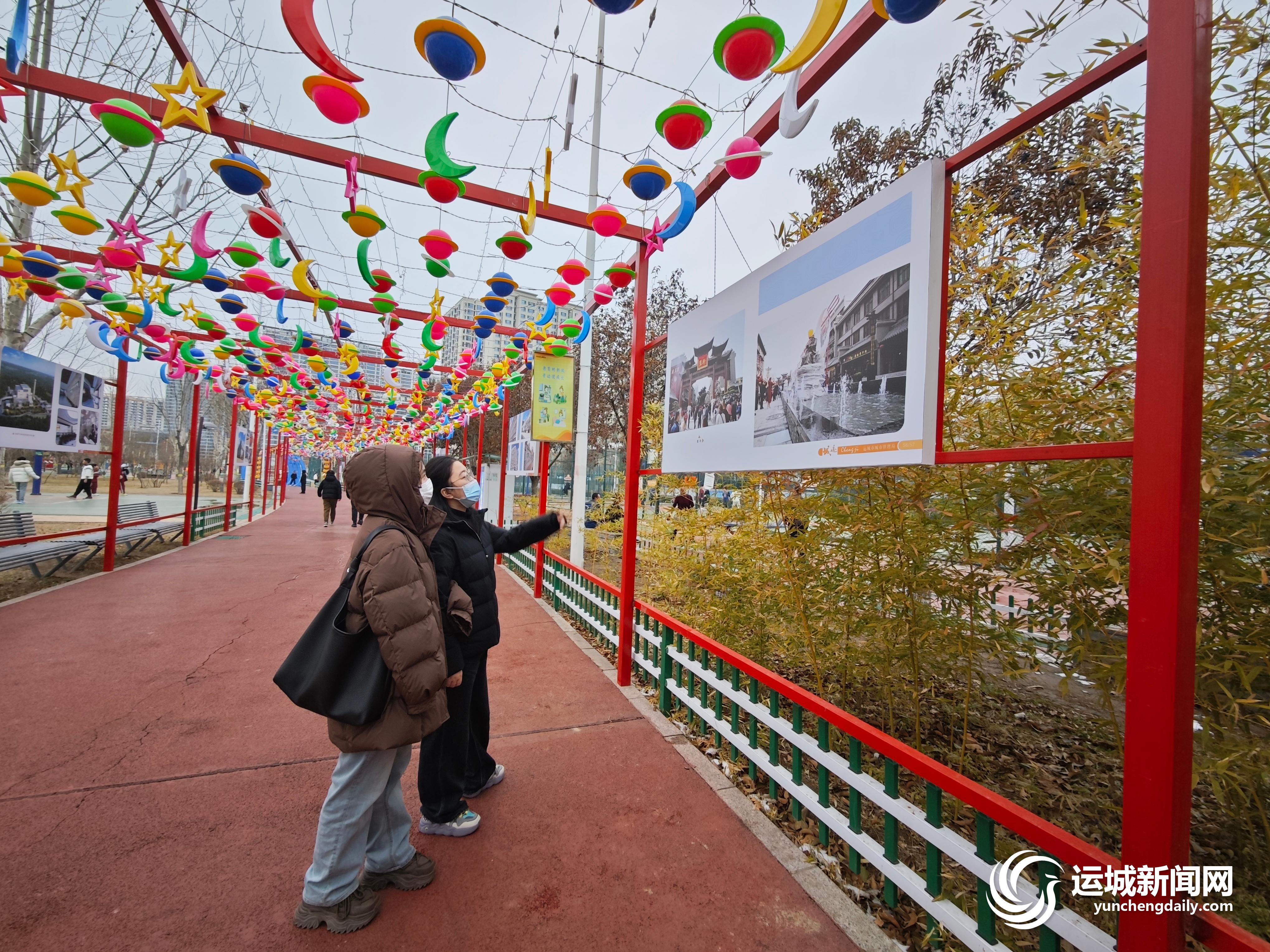 今年春节期间,每天都有很多市民前来欣赏花灯、观看图展,大家通过展板上的照片和文字,细数运城这几年发生的大大小小的变化。有些市民看到自家附近的照片时,会激动地指给身边的家人朋友;还有些市民翻出手机里的旧照片,和展板上的图片对比,从而更加深刻地感知城市在发展中“旧貌换新颜”。