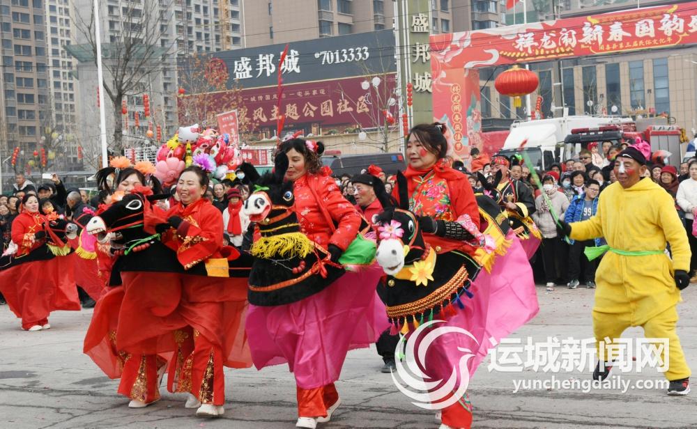 铿锵悦耳的铜镲、响彻云霄的锣鼓、活力四射的舞龙舞狮、风趣诙谐的划旱船……年味十足的民俗表演纷纷亮相。虽然天气寒冷,但社火表演队员们个个情绪高涨、精神抖擞,他们身着艳丽的节日盛装、迈着整齐的步伐,用激昂的鼓点奏响节日的欢歌,用如潮的鼓声敲击出全县上下奋发图强、勇往直前的激情和热情。