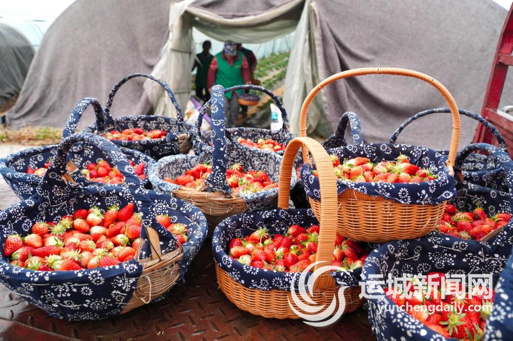 2月29日,在山东省枣庄市薛城区一处大棚草莓种植园内,员工将刚采摘的草莓装车。近日,枣庄市的大棚草莓种植户忙着采摘成熟的草莓。近年来,枣庄发展大棚草莓种植产业,帮助农民拓宽增收渠道。新华社记者 徐速绘 摄