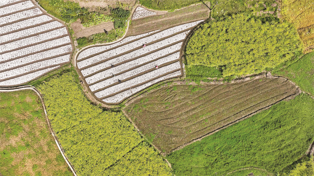 初春时节,当地村民们开展育苗、栽种等农事活动,一派早春人勤的繁忙景象。 新华社发(张良静 摄)