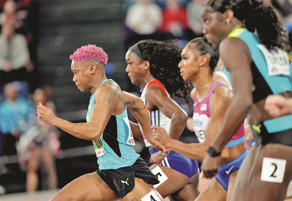 3月3日,巴哈马选手查尔顿(左一)在比赛中。