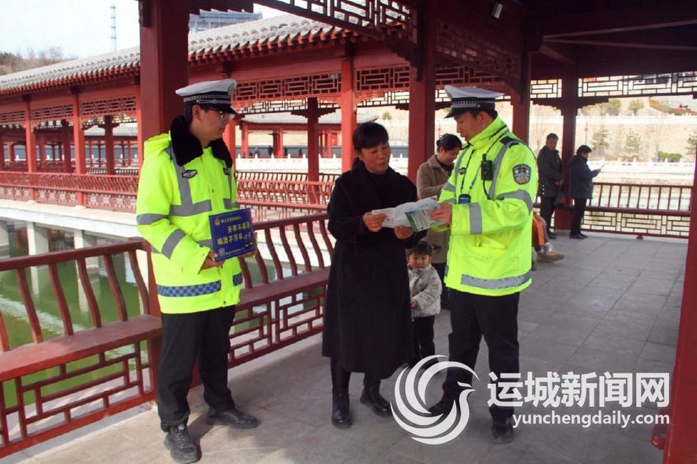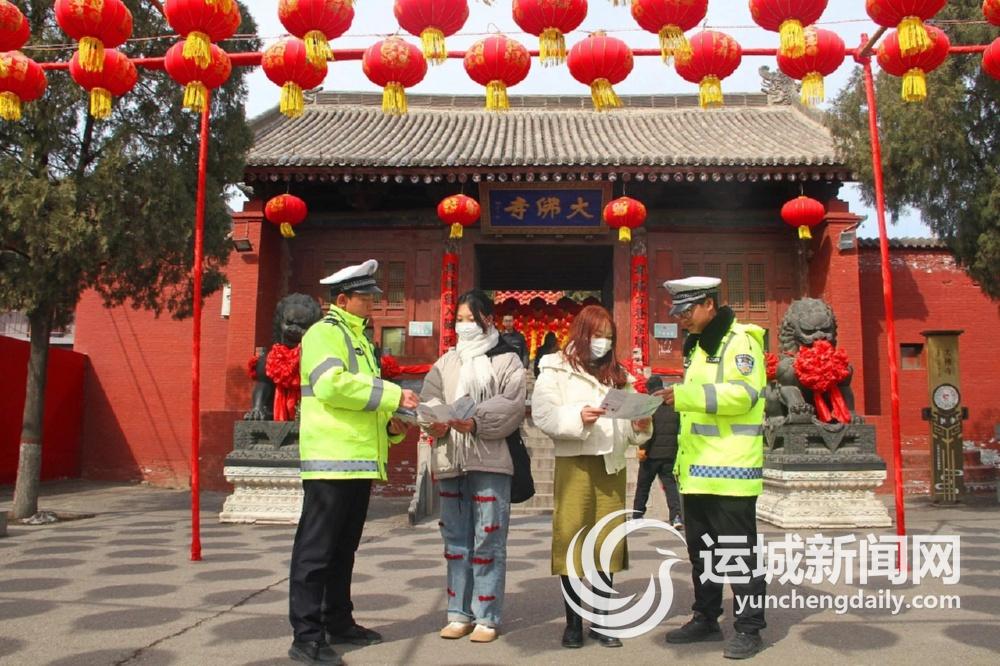 运城晚报讯(记者 张蕊彤)3月1日,稷山交警大队民辅警来到2024年稷山县大佛寺民俗登高节活动现场,向游客和群众进行交通安全宣传。