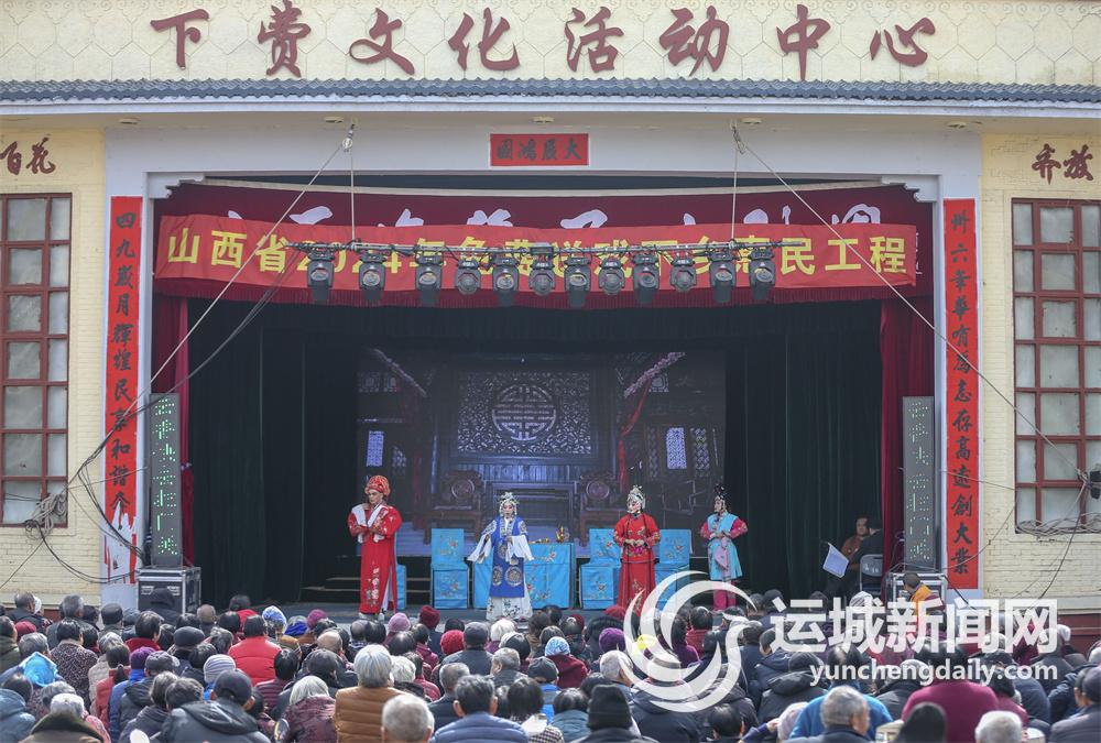 3月1日,春光明媚,稷山县下费村村民在文化活动中心观看临猗县眉户剧团表演的眉户《张古董借妻》。