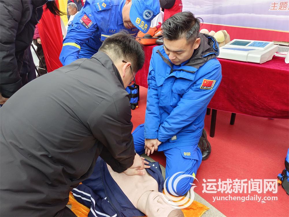 3月5日,我市2024年“文明实践我行动”主题活动启动仪式现场,运城市盐湖区蓝天救援队队员现场教群众如何进行心肺复苏。 记者 裴旭薇 摄