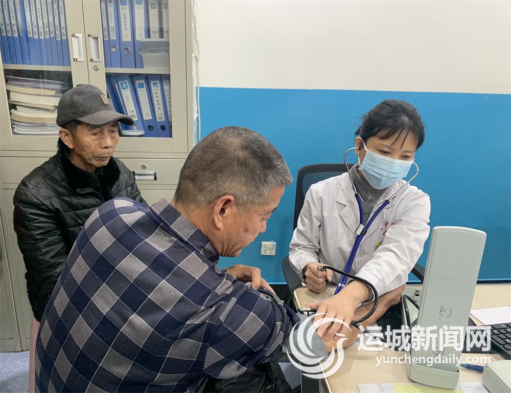 丁桂荣在为患者量血压。