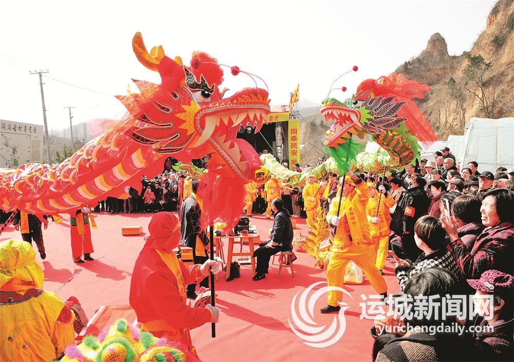 3月11日,一支民间舞龙队在万荣县万泉乡涧沟古村进行表演。 涧沟古村为期3天的第四届“二月二龙抬头”大型庙会上,除大型歌舞、戏剧演出和舞龙、舞狮巡村游等精彩表演外,还有儿童游乐、特色小吃、手工艺品等,吸引了四面八方的群众来到这里,迎龙祈福。 张怀心 董智利