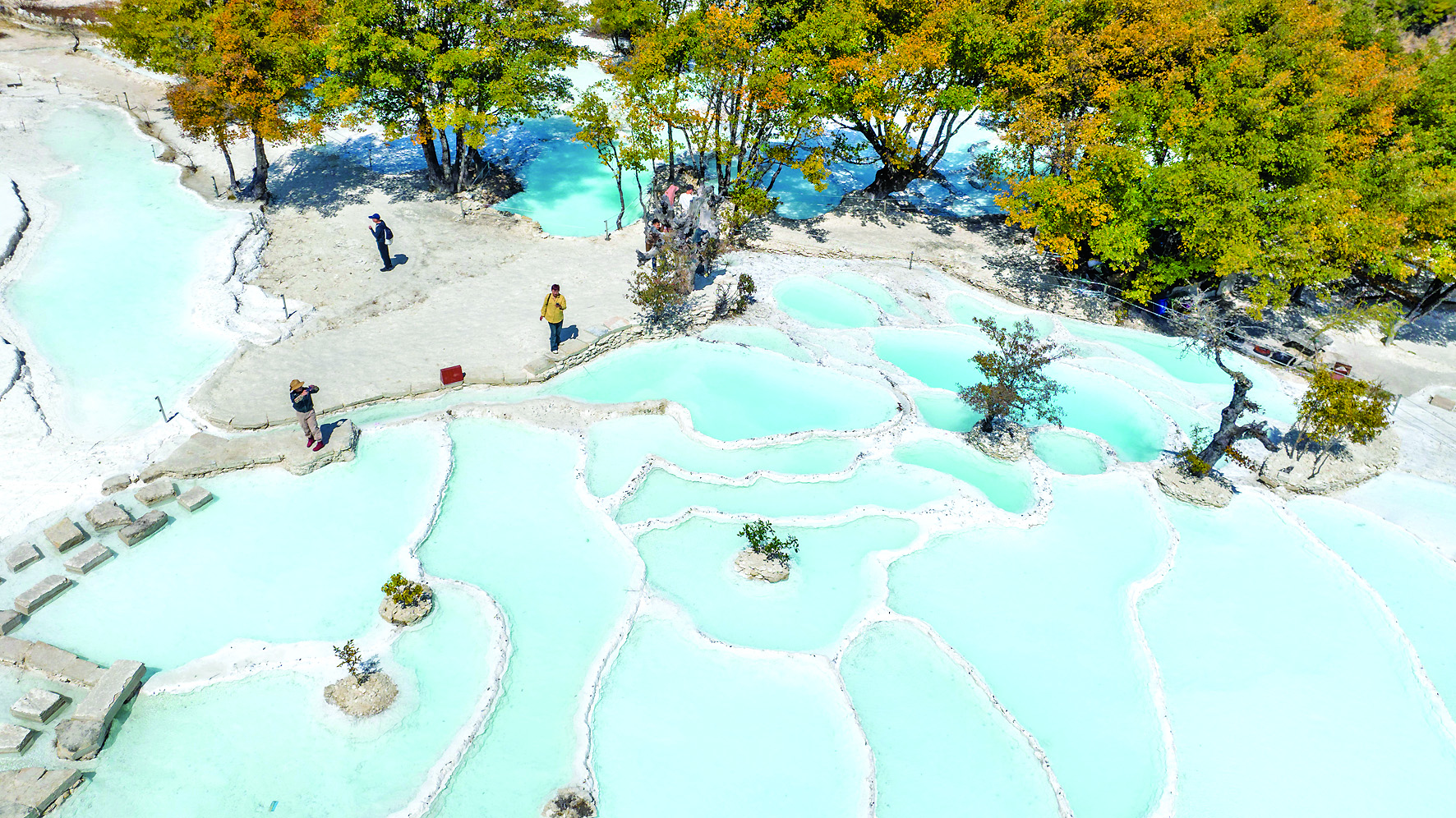 白水台位于云南省迪庆藏族自治州香格里拉市三坝乡,海拔2380米,面积约3平方公里。由于碳酸钙溶解于泉水,形成了白水台如今的自然奇观,被称为“白云遗落在人间的地方”。