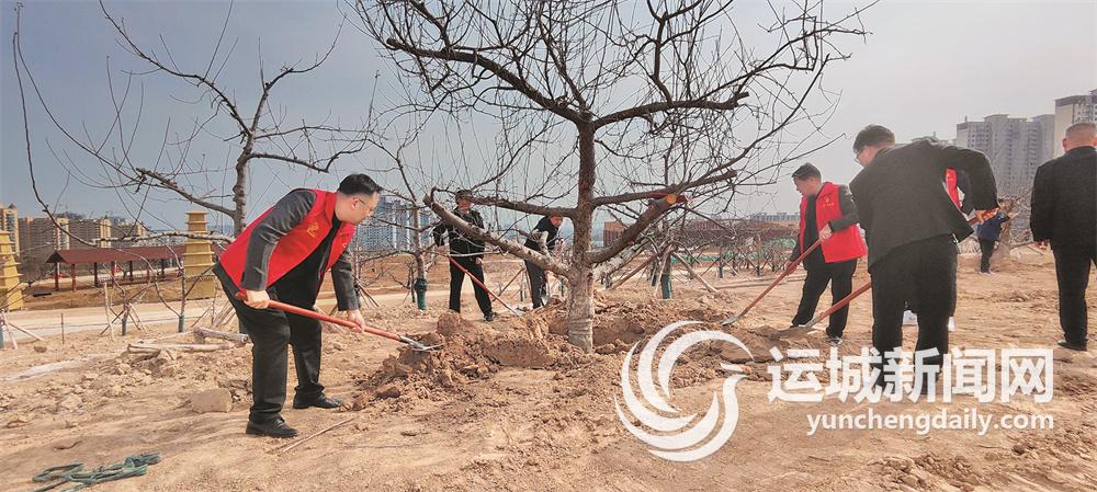 守底线,践行绿色发展。在活动现场,大家分工合作,挥锄挖坑、培土围堰、提水浇灌,每个环节都井井有条,以实际行动践行绿色发展理念,守护好生态底线,加快“六美”临猗建设。