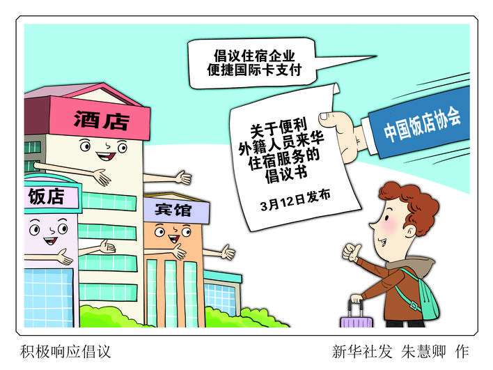 为进一步完善入境旅游服务,推动住宿、餐饮等旅游全产业链恢复发展,中国饭店协会3月12日发布关于便利外籍人员来华住宿服务的倡议书,建议我国住宿企业加强与国际标准接轨、优化境外预订渠道管理,便捷国际卡支付等。 新华社发 朱慧卿 作