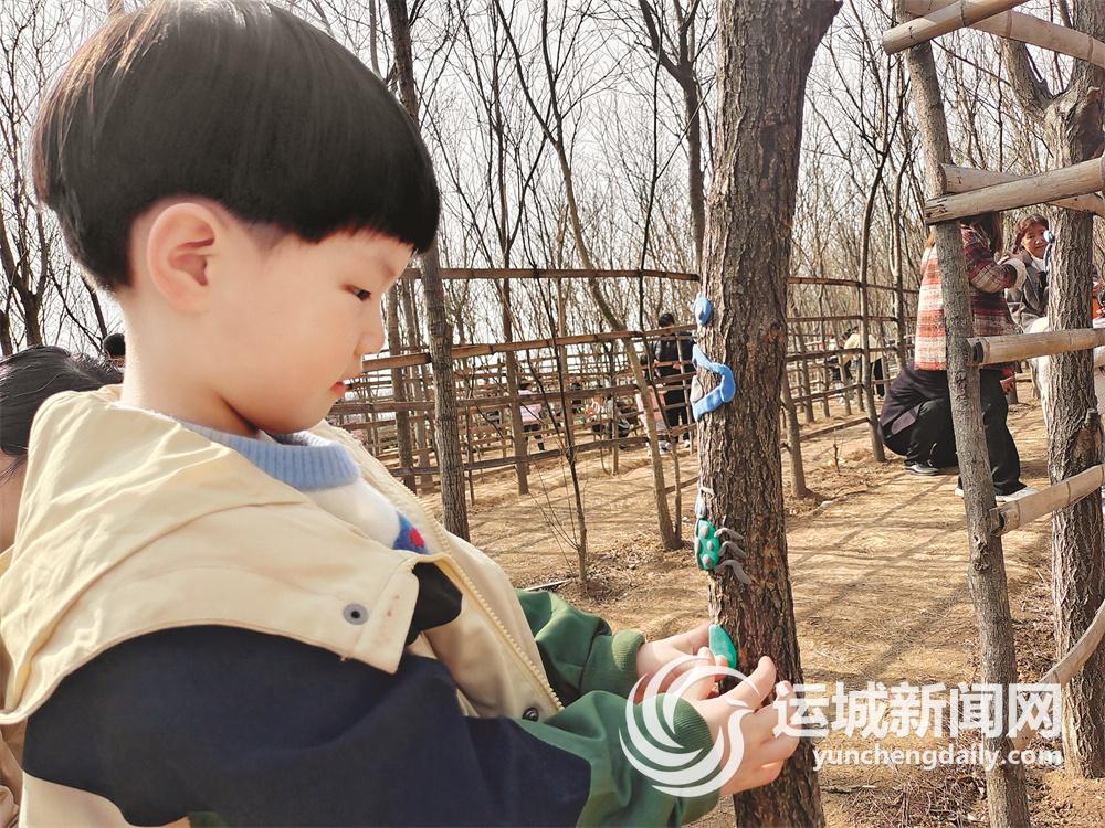 野趣农场经营者冯腾介绍,为使孩子们在实践中感知节日意义,农场因地制宜,统筹资源、合理布局,开发了相应的项目、课程和活动,在3月开展“趣植树 浇朋友”植树月活动。3月1日以来,该农场已接待了市区和临猗、闻喜,以及河南三门峡近1000人次参加活动。“西边新开辟出来的5亩空地就是种植区了,我们还精选了5000余株不同种类的树苗供孩子们种植,孩子们在这里可以体验植树造林的成就感。”冯腾说:“在东边这10亩树林,还可以开展丛林找鸡蛋、丛林穿越、丛林探宝等游戏项目,就是希望充分利用丛林资源,为农文旅融合发展提供更多可能。”