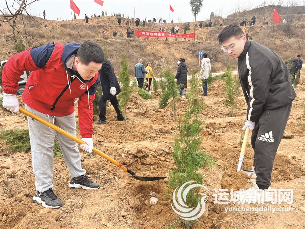 当天,该公司一行人在中条山植树点挖坑、安装“树葆”、埋下种子,力所能及为荒山增绿披彩。