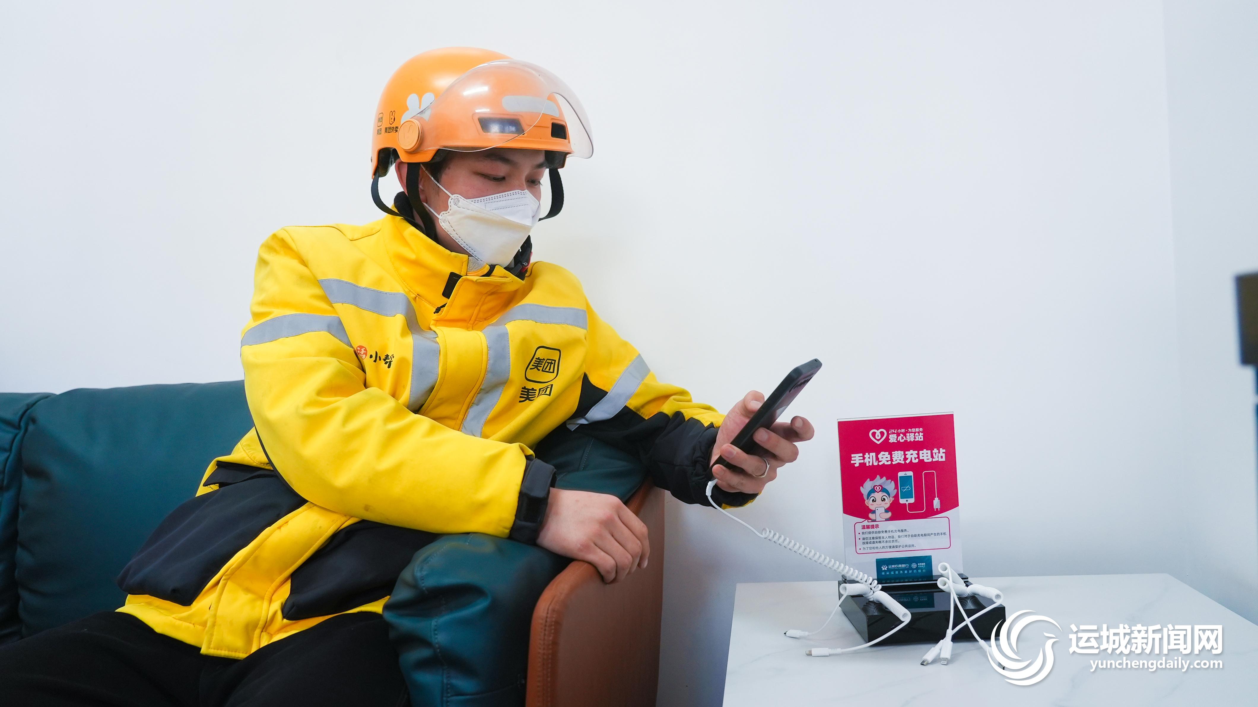 “你们是城市的‘摆渡人’,为这座城市的发展贡献力量。这个爱心驿站24小时开放,每天有专人补充物资,欢迎你们成为爱心驿站的常客。”运城农商银行工会主席平静对外卖小哥们说道。