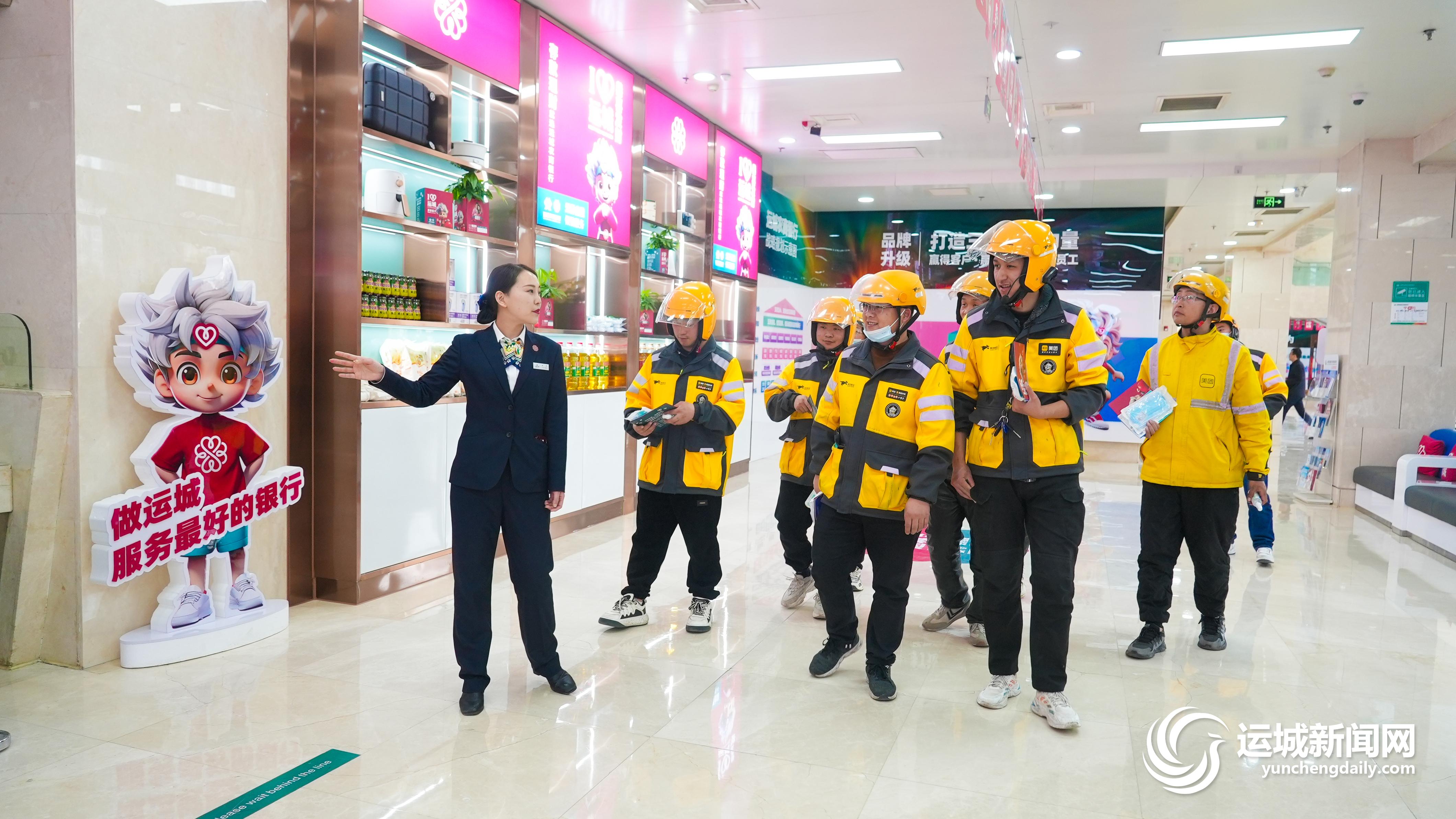 现场,无处不在的卡通人物“风歌”,引起了外卖小哥的注意。“‘风歌’是我们银行的品牌大使,名字取自《南风歌》,寓意运城农信人愿意为大家提供热情、高效、及时的服务。”银行员工的讲解,得到了外卖小哥的赞许。