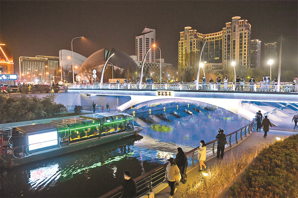 3月16日晚,2024年北京亮马河醒春启航活动举行。近年来,北京市朝阳区推动城市更新,打造了80万平方米的亮马河国际风情水岸,实现6公里航线通船,游船航线途经燕莎、蓝色港湾、红领巾公园等多处商圈、公园,已成为北京旅游消费的新亮点。 新华社记者 鞠焕宗 摄