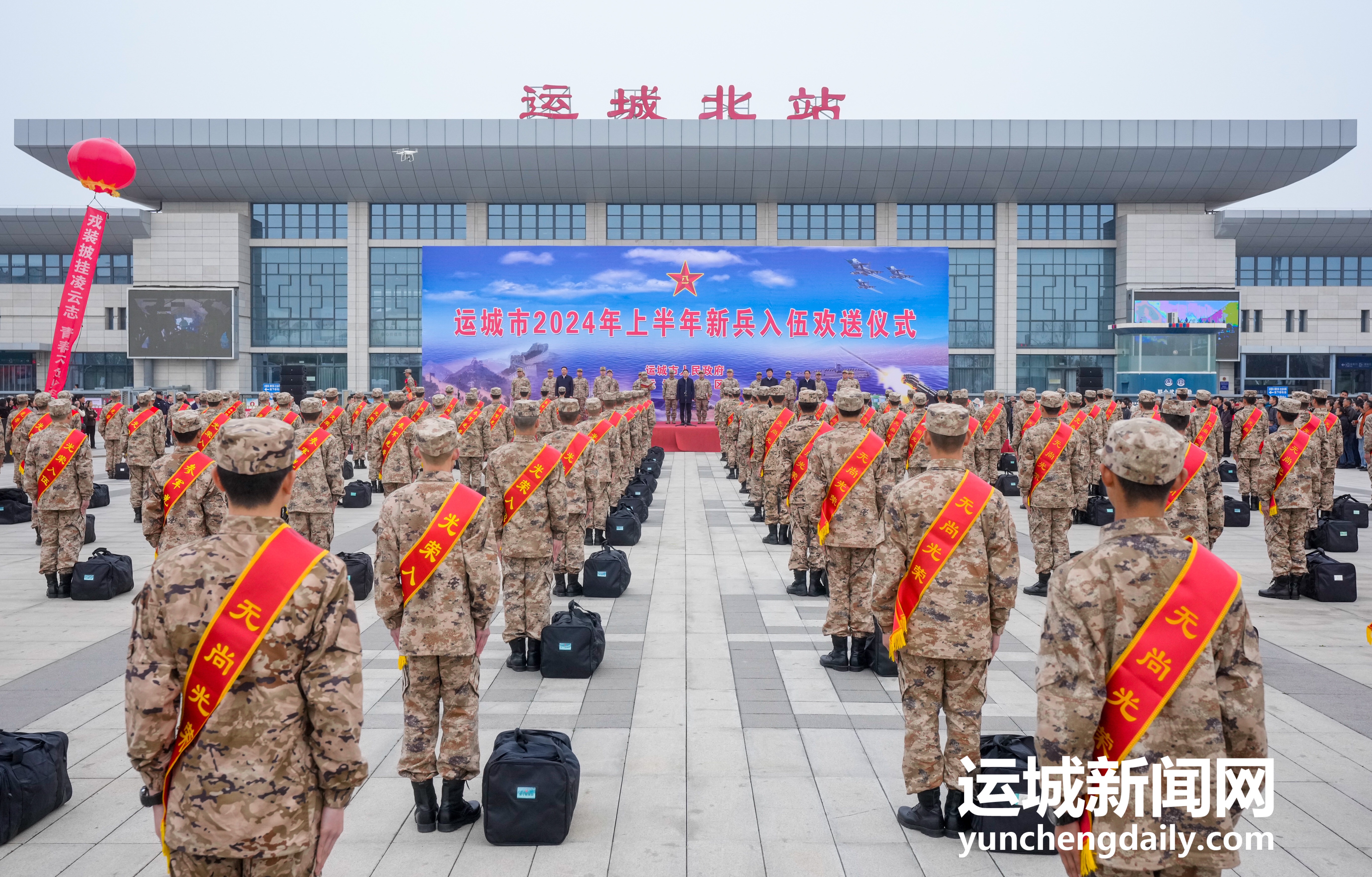 本报讯(记者 张 越)号角催征,壮歌以行。3月18日,运城市2024年上半年新兵入伍欢送大会在运城北站广场举行。在庄严的国歌声中,入伍新兵英姿挺拔、整装待发,即将奔向报效祖国的新征程。市委副书记、市长、市征兵工作领导小组组长储祥好出席并讲话。运城军分区大校司令员、市征兵工作领导小组副组长郭新武致欢送词。运城军分区大校代理政委、市征兵工作领导小组成员姚宏生主持。市政府秘书长、市征兵工作领导小组成员王红波出席。
