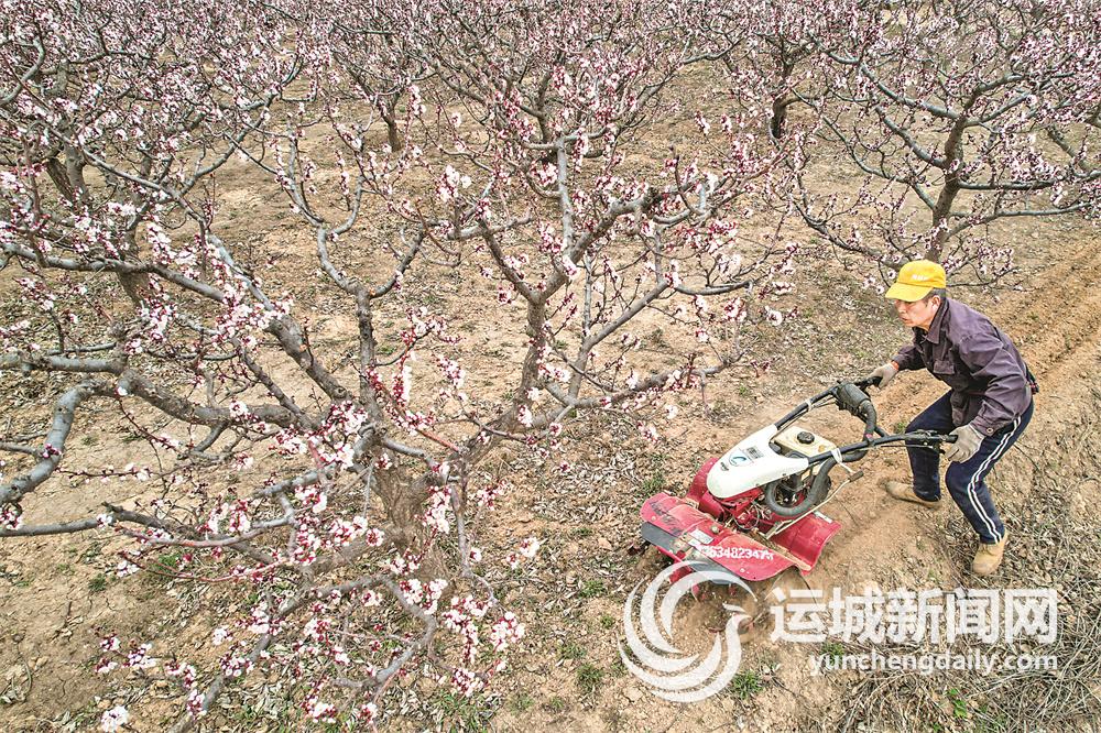 3月16日,果农在永济市韩阳镇一处杏园旋耕土地。