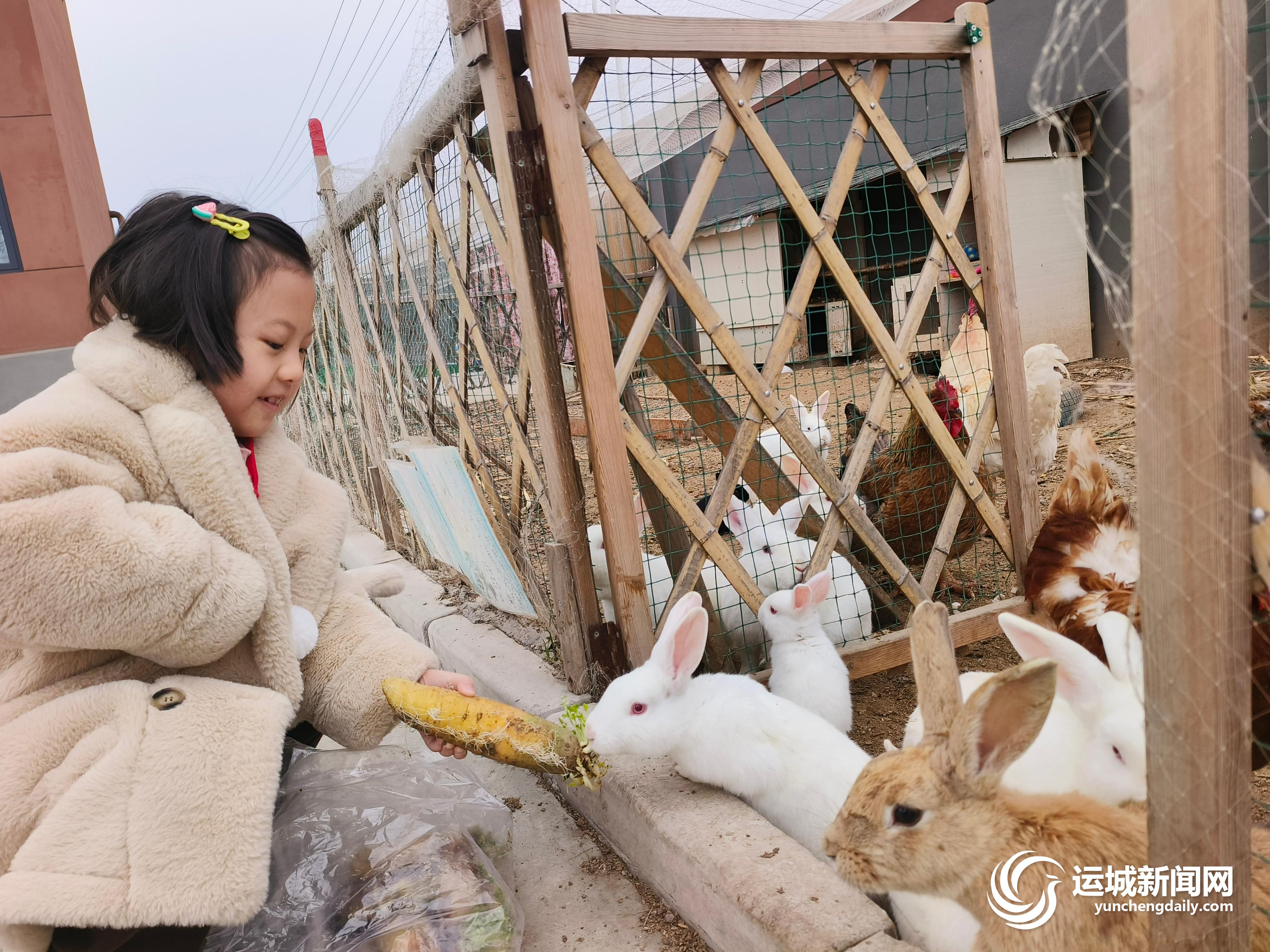 在自然中锻炼,更从自然中学习。盐湖区第八实验幼儿园位于东郭镇,自然环境优越,室外运动场超过1000平方米,不仅有跑道、篮球架,还有一个小养殖场。“这里有兔子和鸡!”“我们可以喂饲料,特别有趣。”孩子们七嘴八舌地说着。“孩子们喜欢小动物,我们就专门留出一片空地养兔子、养鸡,从最开始的三四只兔子到现在已经有20多只了。借助这些小动物,我们还会给孩子们开展生命教育活动,告诉他们生命的珍贵。”武翠霞说。