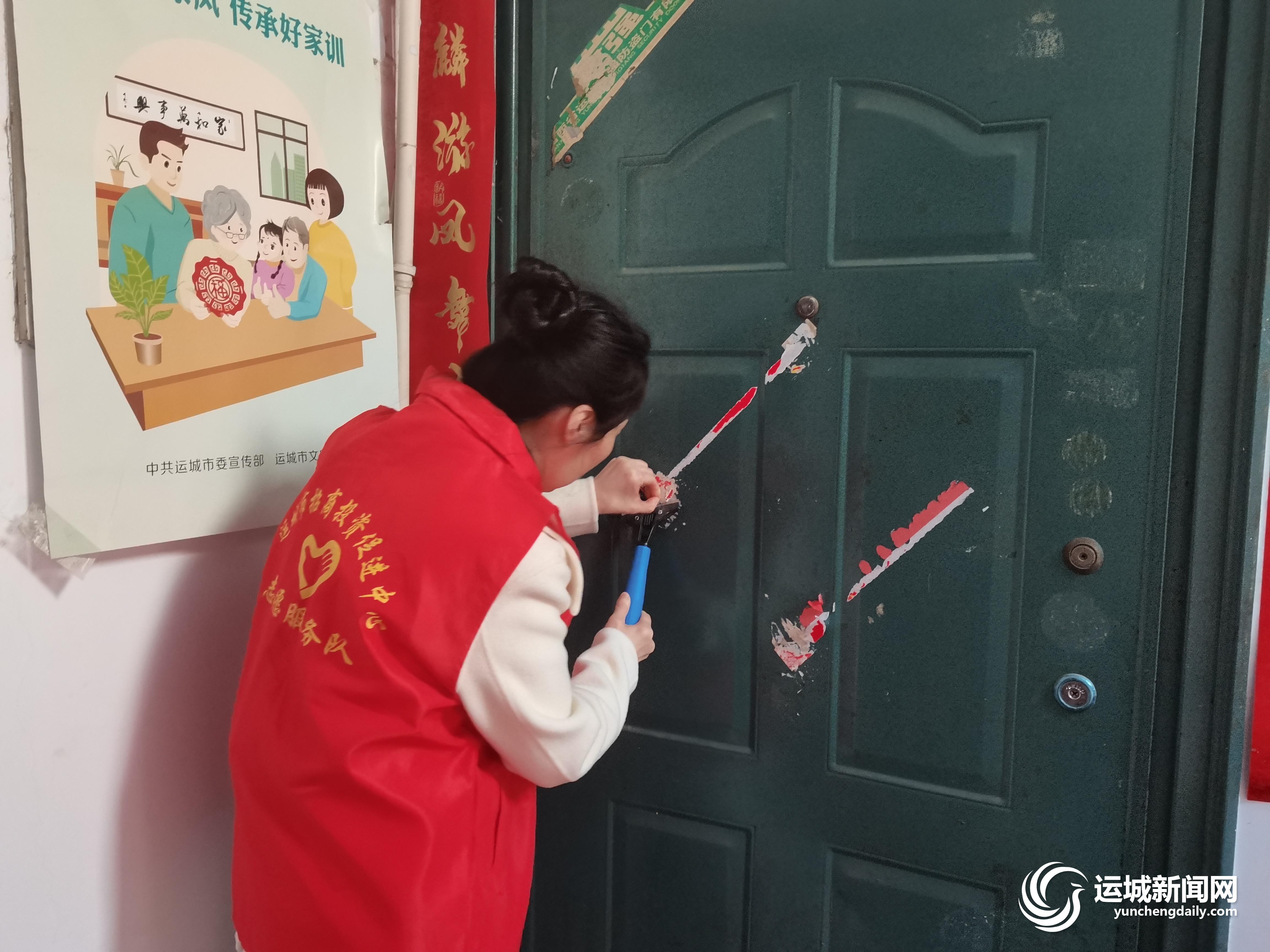 活动中,工作人员和志愿者们拿起清洁工具,深入居民小区进行卫生清理。大家团结协作,对小区楼道内的垃圾杂物、乱堆放的木板、纸壳,以及草坪、绿化带的生活垃圾、烟头进行捡拾和清理,逐一清除卫生死角。同时,志愿者们用除胶剂、铲刀等工具清理了小区内墙体、护栏等公共设施上张贴的小广告,用行动积极宣传、引导群众共同抵制影响环境的行为(下图)。在清理过程中,工作人员还向居民宣传环保生活理念及一些惠民政策,引导居民践行文明行为规范,共同营造整洁有序、文明和谐的城市环境。