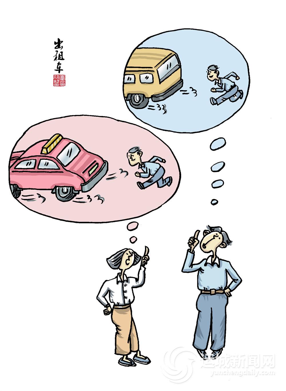 克杰进了门就对老婆说:“哼,我想花5毛钱搭车,可公共汽车死活不停。我就跟着它跑回来了,还省了5毛钱哩!”老婆一听就责怪道:“哎呀,你怎么不跟着出租车跑呀?你要是跟着出租车跑,咱可以省5块钱哩!”