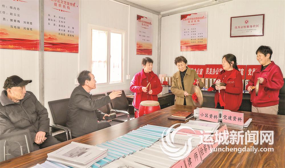 民发小区今年65岁的退休干部王和平紧跟时事,将国家政策、医疗保险、反诈宣传等内容编成快板、三句半、垣曲镲等,带领文艺队进行表演,既丰富了居民精神文化生活,又宣传了党的政策。“小区就像个大家庭,老年人聚在一起排练表演节目,过得快乐而又充实,别看我们这个小区老旧,大家还都不愿意搬走呢。”王和平说。