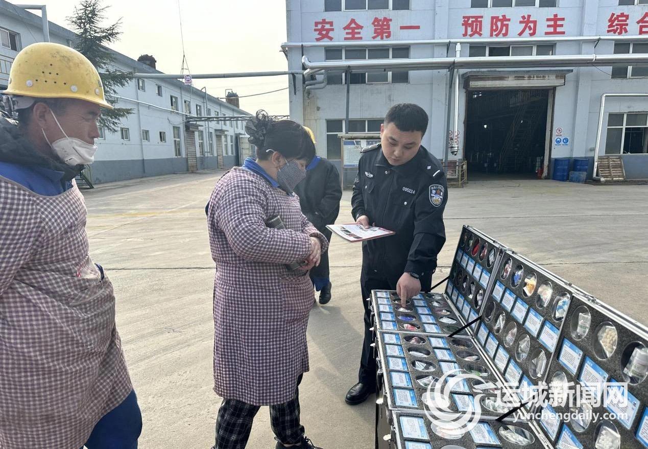 运城晚报讯(记者 张蕊彤)3月19日,绛县公安局禁毒大队民辅警携手禁毒社工,深入辖区工厂开展禁毒宣传活动。