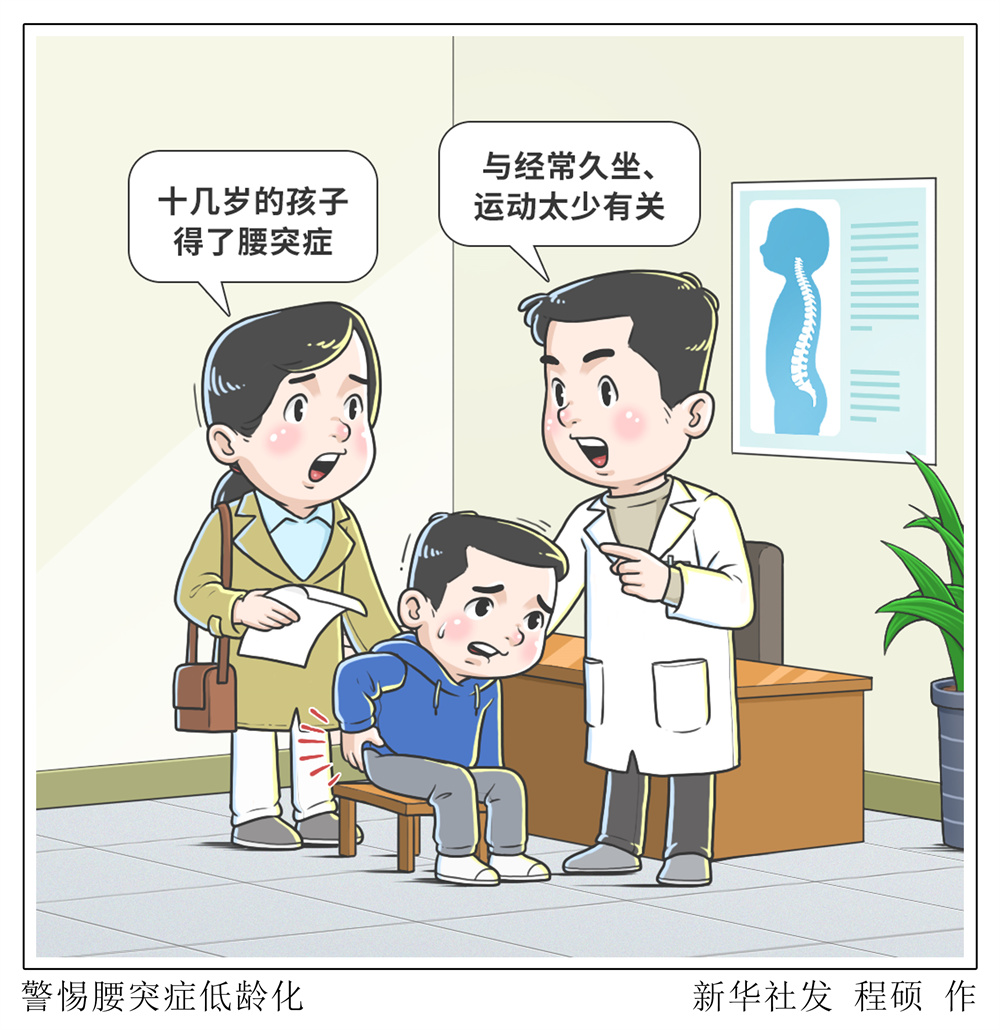 腰椎间盘突出症是一种较为常见的脊柱退行性病变,多发于中老年人。然而调查发现,近年来青少年腰突症患者呈现增多趋势,有的孩子才十几岁便饱受腰突症困扰,影响正常生活和学习。 新华社发 程硕 作