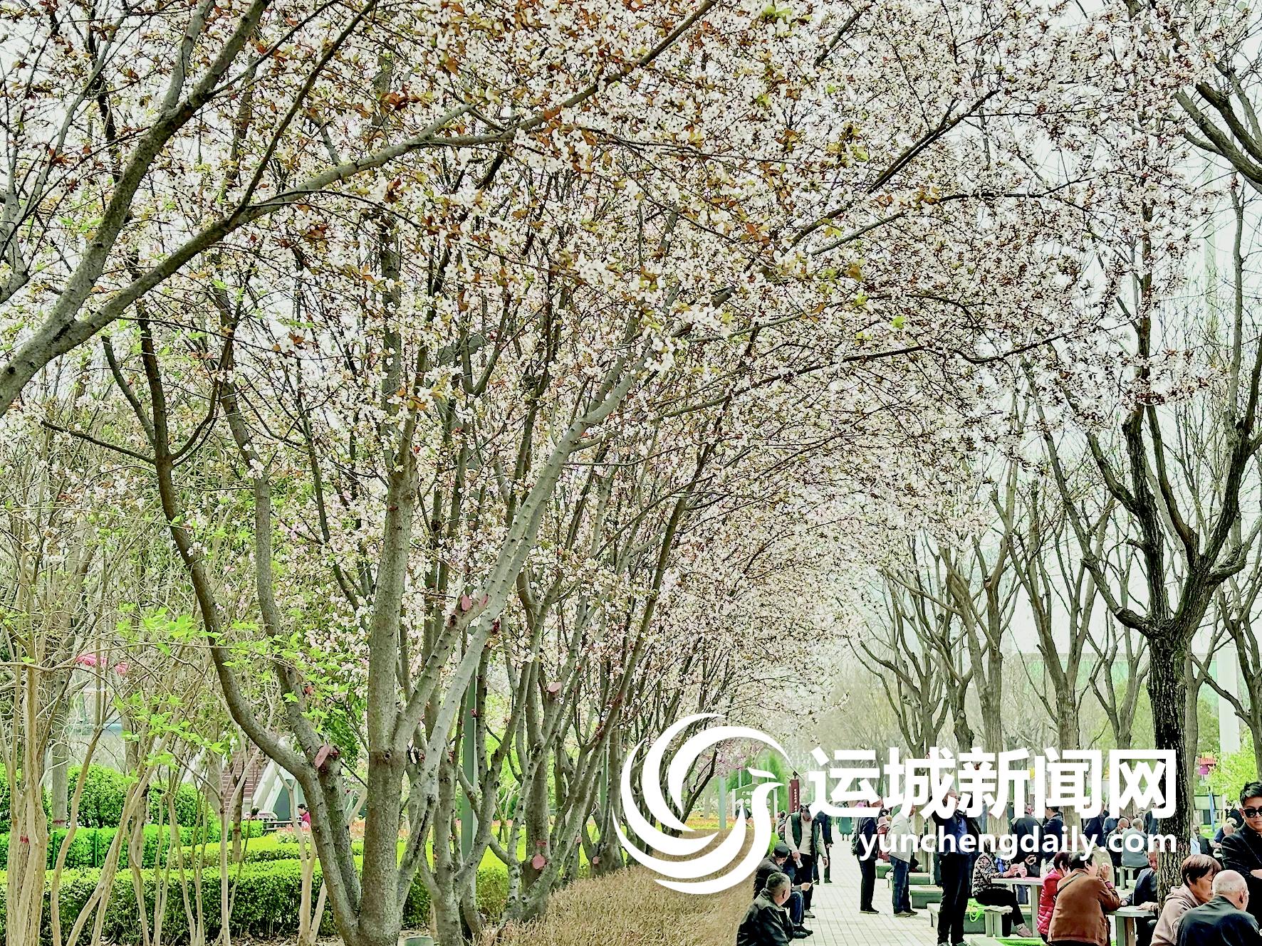 再往前走,休闲锻炼区、棋牌区内更是热闹。市民们有的三五人围坐一起下棋,有的坐在休闲座椅上唠唠家常,有的操作器械锻炼身体……旁侧一排成片的紫叶李开得正好,树上的花朵粉白交织,如云似霞,将道路装点得诗情画意,不时还有几只小鸟驻足枝头叽叽喳喳。微风轻拂,紫叶李晃动着花枝,让人倍感舒服惬意。