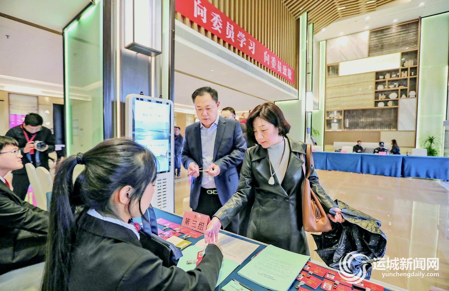 3月24日,出席政协第五届运城市委员会第三次会议的委员在驻地向大会报到。