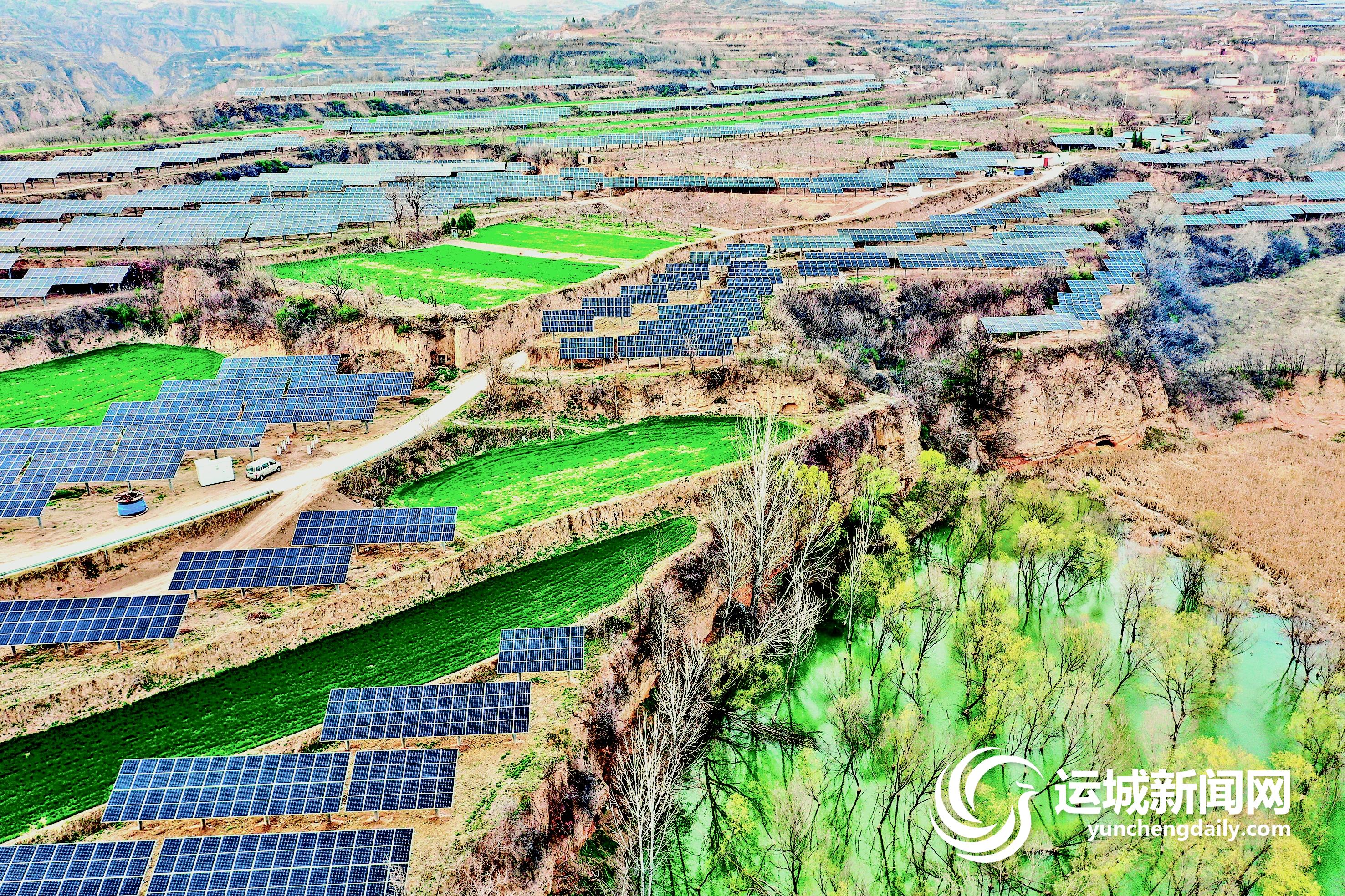 ▲3月21日,平陆县圣人涧镇刘家沟村一带山坡上,一排排光伏发电板与蜿蜒的梯田交相辉映,绘就成一幅风光旖旎的生态画卷。