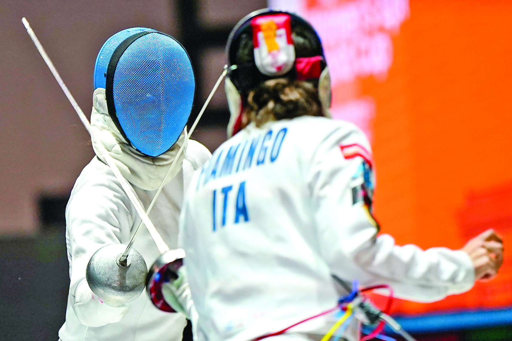 ▲3月24日,中国队选手唐君瑶(左)和意大利队选手菲亚明戈在决赛中。