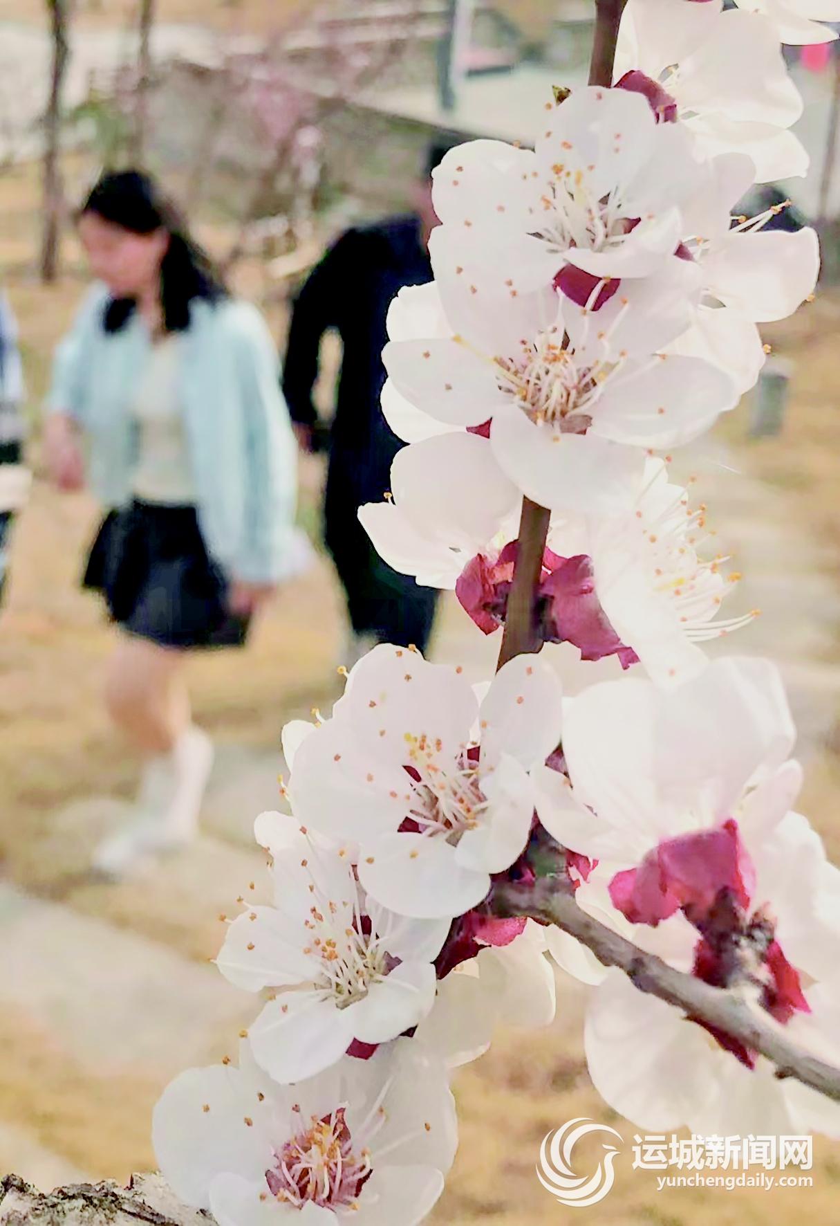 景区内,目之所及,皆是美景。梅花红杏花白,连翘朵朵开……