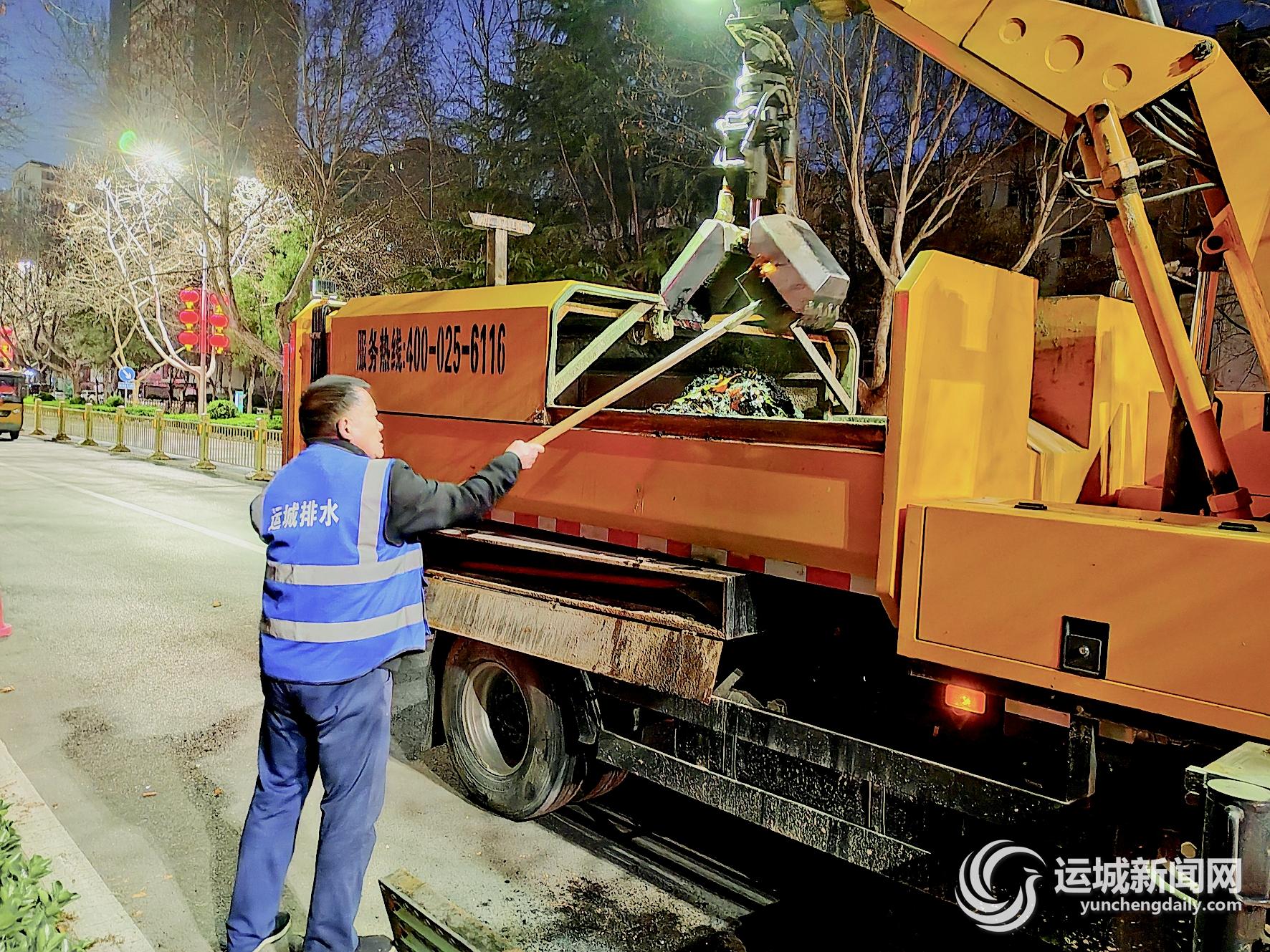 运城晚报讯(记者 祁克宁)3月25日晚,在市区河东东街,市城市管理局排水服务中心组织工人和器械,对城市排水管网进行了清淤疏通作业。