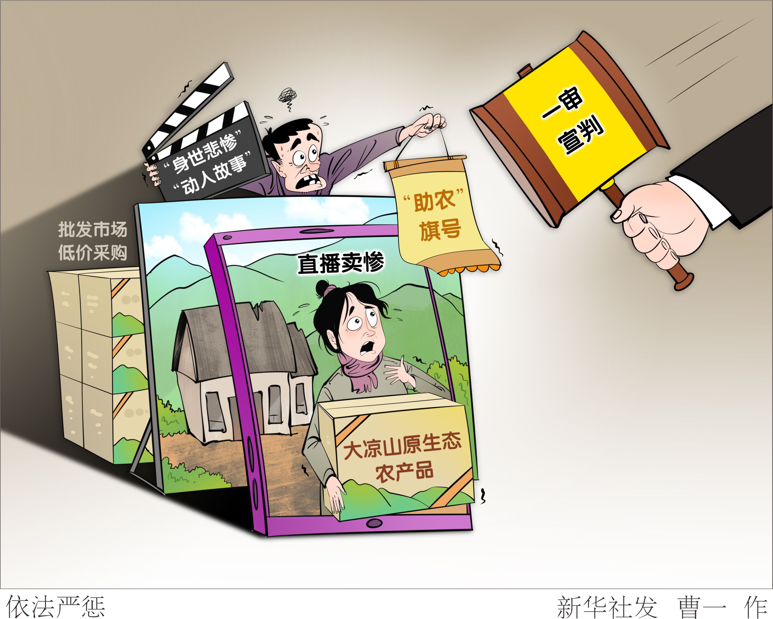 “身世悲惨”的女孩坚强生活,“动人故事”的背后是早已设定好的剧本;打着“助农”旗号售卖的“大凉山原生态农产品”,实际是从批发市场低价采购来的……近日,四川省凉山州昭觉县人民法院对“凉山孟阳”“凉山阿泽”案一审宣判,8人因虚假广告罪被判处9个月至1年2个月不等的有期徒刑,并处2万元至10万元不等罚金。新华社发